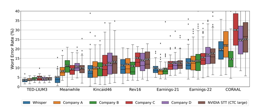 Whisper is competitive with state of art commercial and open source systems. Diagram from whisper research paper p.9