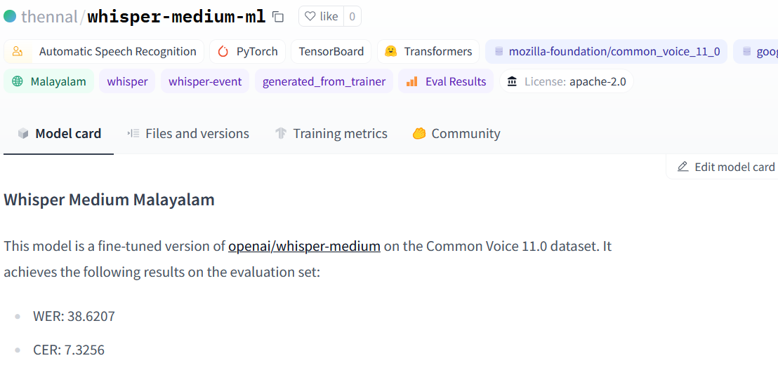 thennal/whisper-medium-mlKurian Benoy || OpenAI Whisper and it’s amazing power to do fine-tuning demonstrated on my mother-tongue