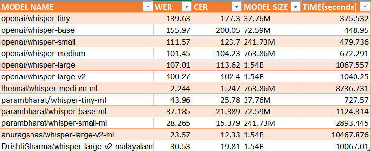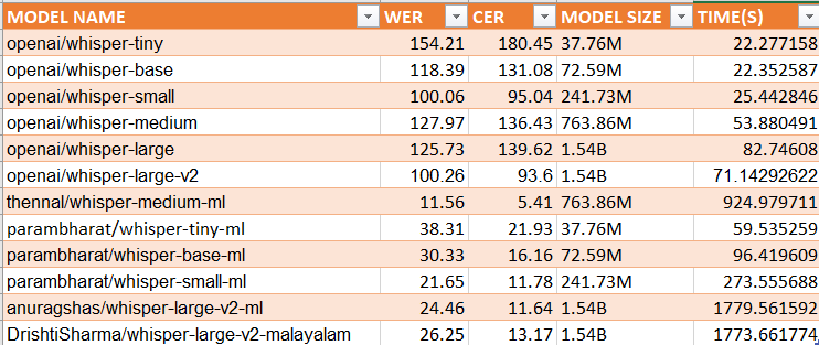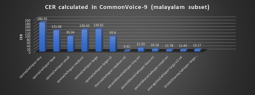 thennal/whisper-medium-mlparambharath/whisper-small-mlI was sceptical about the winning models becuase of: