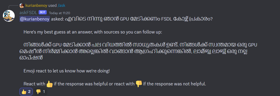 For the language Malayalam, the results are as follows:
